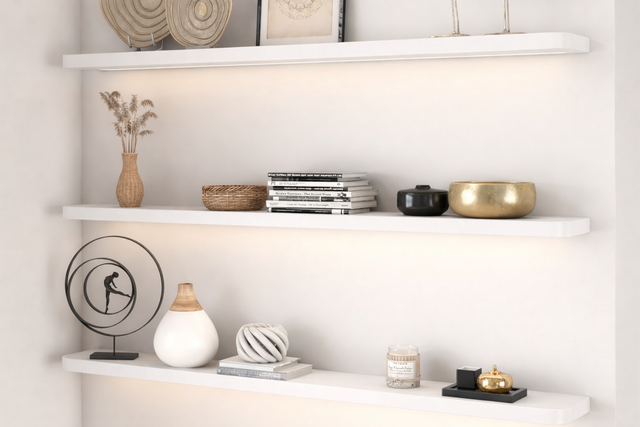 Illuminate your space with our shelves—choose to add LED lighting for that perfect touch of brilliance.